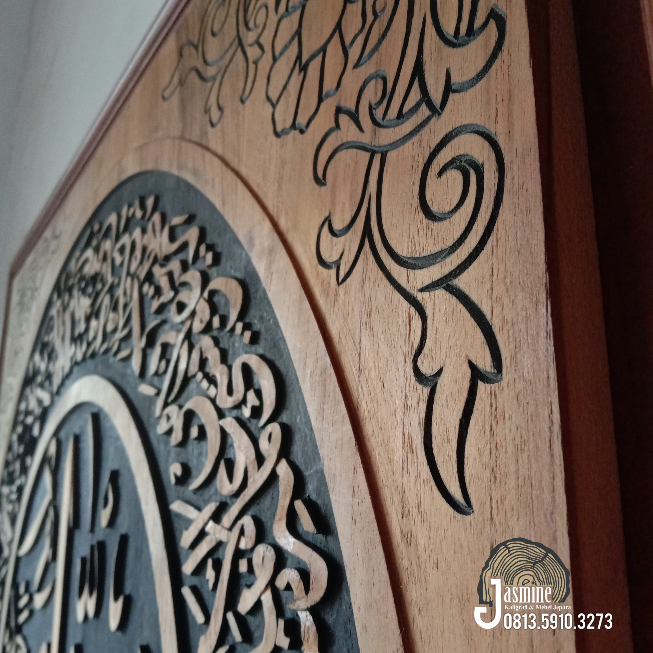 Tiap detailnya sangat diperhatikan oleh pengrajin Jasmine Kaligrafi Ukir Jepara,sehinnga sangat indah dijadikan sebagai pengingat kepada-Nya dan juga pelengkap/penghias ruangan Anda seperti ruang tidur, ruang tamu, ruang belajar dan kantor.