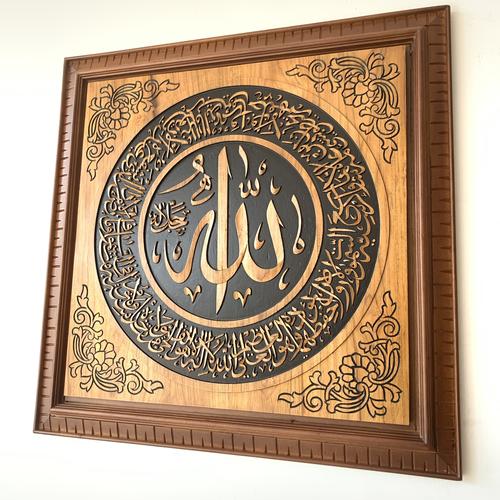 Kaligrafi 1 Pasang Lafadz ALLAH MUHAMMAD Ayat Kursi Kayu Jati Perhutani Home Decoration